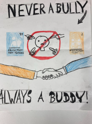 Rights Respecting School Councillors are advocates of our school values and behaviour ethos. They regularly remind their peers to follow both their class and playground charters. As part of our work on anti-bullying week, we are reviewing our school, playground and class charters. We also encouraged children to make anti-bullying posters!